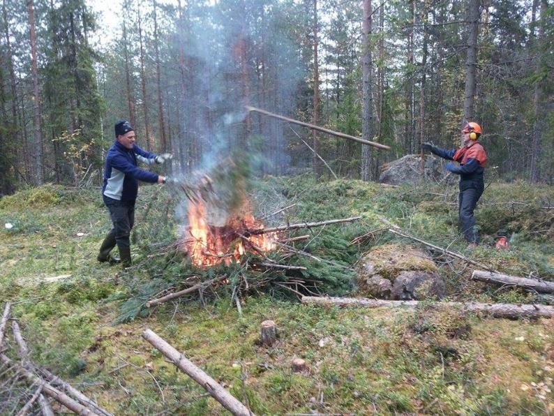 Puuta ja risua meni matalaksi. Pienimmät poltettiin paikan päällä.