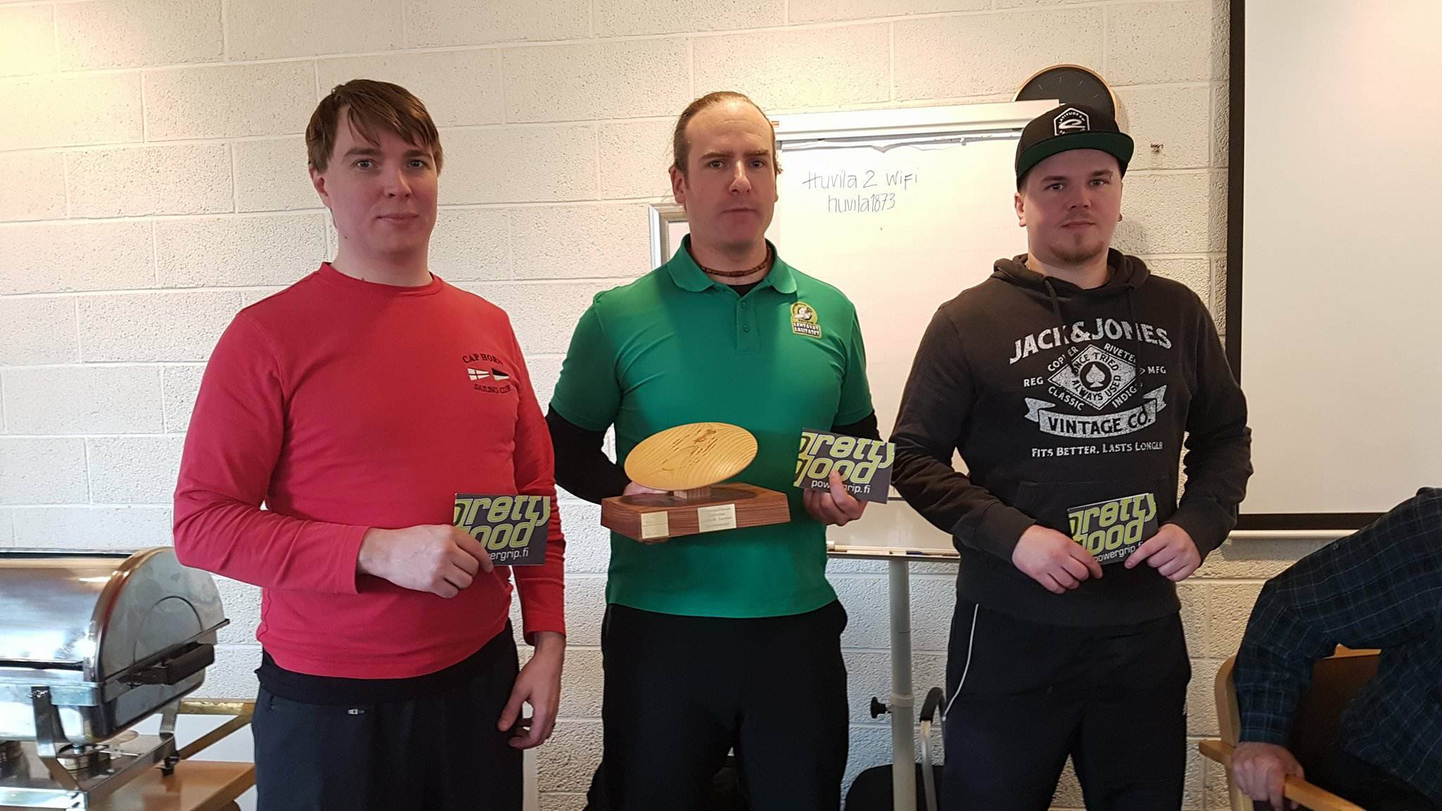 Kolmen kärki: 1. Kalle Lehto (kesk) 2. Lasse Hirvonen (vas) 3. Teemu Lehtinen (kuva: Aleksi Salakka)