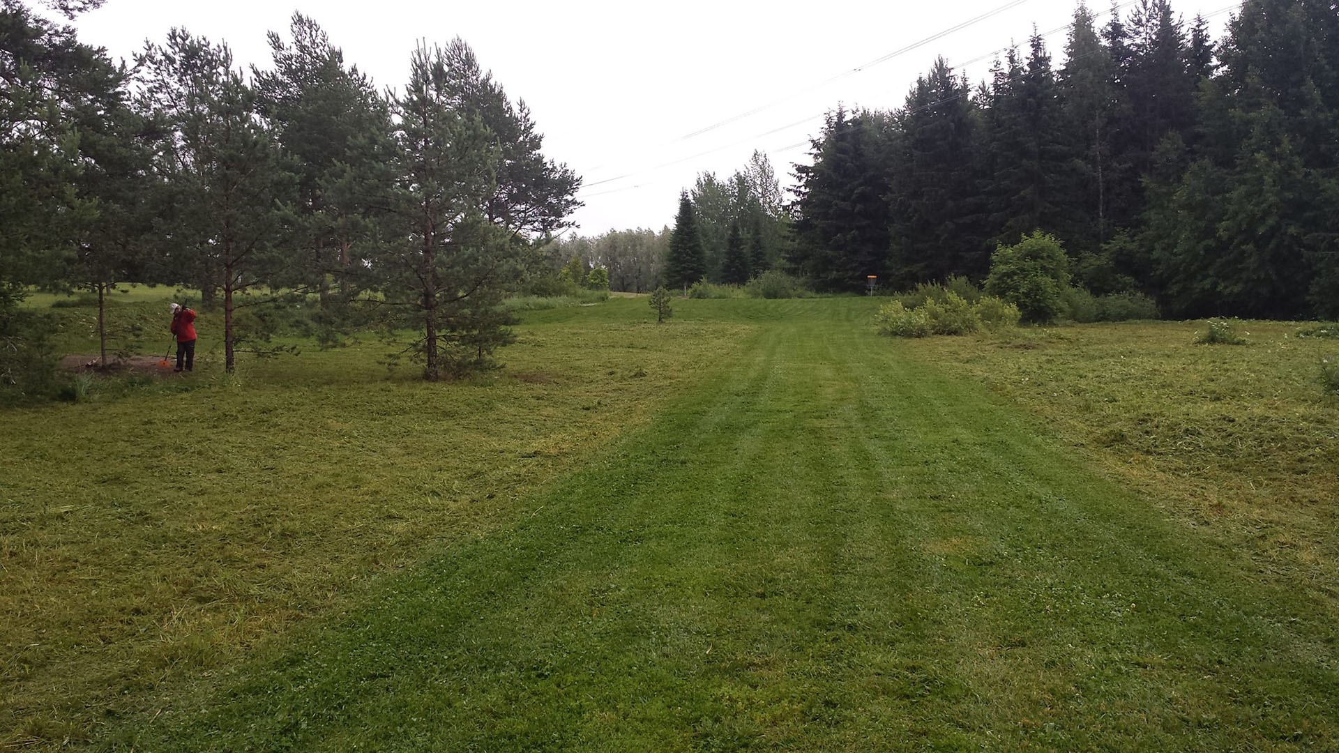 Kiekkoja kätkevät heinikot on saatu matalaksi väylien 2-5 alueella.